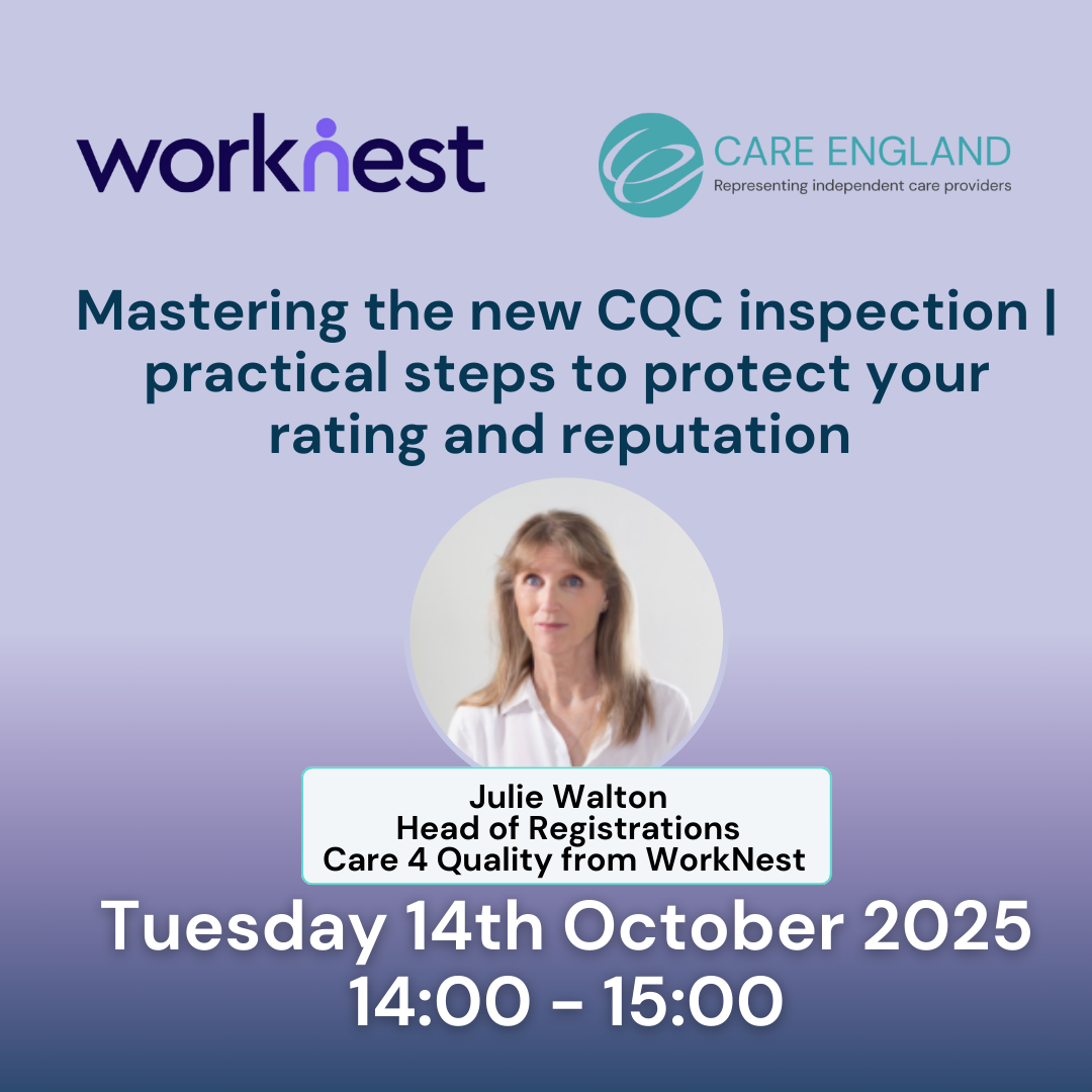 In this free webinar, delivered by our trusted partners, Care 4 Quality by WorkNest, attendees gained the insight and tools needed to confidently meet current inspection demands. They learned how to avoid common pitfalls, how to showcase their strengths effectively, and took away practical steps to help improve their rating and protect their service.